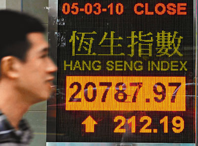 市場人士普遍預(yù)測,希臘公布了48億歐元削減赤字方案后,市場反應(yīng)正面,令歐元急速反彈,兌美元已經(jīng)重上1.36水平,帶動(dòng)資金重返商品市場及股市,相信有利本周資源股表現(xiàn)。另外,兩會(huì)期間,開發(fā)新能源議題相當(dāng)受關(guān)注,故新能源同樣有望炒上,至于航運(yùn)股上周也出現(xiàn)全線上升的情況,主要因波羅的海指數(shù)急升及運(yùn)費(fèi)加價(jià),料本周該類股份也會(huì)是市場焦點(diǎn)。