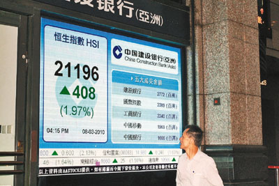 中新網(wǎng)3月9日電 據(jù)香港《文匯報(bào)》報(bào)道,美國(guó)就業(yè)數(shù)據(jù)理想,加上法國(guó)表示會(huì)支持希臘,紓緩歐洲債務(wù)危機(jī),亞太區(qū)股市普遍造好,港股8日也跟隨上升,最多曾升469點(diǎn)至最高的21257點(diǎn),收市報(bào)21196.8點(diǎn),升408.9點(diǎn),不單收復(fù)21000點(diǎn)大關(guān),更一舉升穿50天線,創(chuàng)6周收市新高,升幅達(dá)2%,但成交額只有650億元。