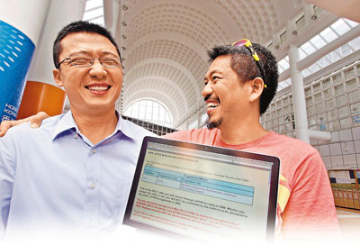 29日是聯(lián)招發(fā)榜的大日子,正在會計(jì)師樓做實(shí)習(xí)生的黃榮新趁午膳時(shí)間外出,在傳媒見證下,與恩師陳兆焯一同上網(wǎng)查閱聯(lián)招結(jié)果。盡管已獲樹仁大學(xué)工商管理課程錄取,黃榮新仍難掩緊張心情,指著計(jì)算機(jī)屏幕的手指都在顫抖,甚至幾次點(diǎn)擊聯(lián)招編號都出錯(cuò)。