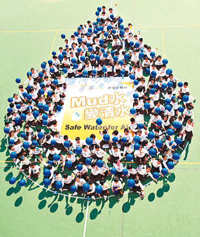 其中祖堯天主教小學(xué)19日率先揭開“改變世界我可以!”大行動的序幕,約200名學(xué)生手持藍色氣球,于學(xué)校操場以身體砌成“Mud水變清水”的水滴點,并高呼“改變世界我可以!”的口號,以表達對貧困國家兒童飲用清水的關(guān)注及身體力行改變世界的決心。