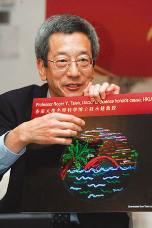 繼香港大學(xué)8日向錢永健頒授榮譽博士榮銜外,香港中文大學(xué)10日也會向他頒發(fā)榮譽理學(xué)博士,并由特首曾蔭權(quán)親自頒授。錢永健在香港的行程緊湊。他9日首先出席公開講座,以“點綠成金”為題,在香港大學(xué)發(fā)表演說,當(dāng)中展示了他的實驗室的最新研究進展。