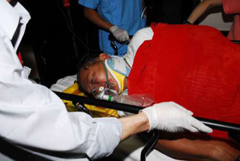 鐘×勝被高爾夫球車壓著,奄奄一息,其余各人除司機外也受傷,眾人驚魂剛定后實時進行搶救,但4人未能移動車身,只好轉(zhuǎn)向球場控制中心求助,職員接報趕往協(xié)助救援。鐘×勝面色轉(zhuǎn)白氣弱游絲,稱胸部好痛,大家擔心他可能是內(nèi)傷出血。
