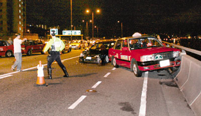 今年7月,警方于觀塘繞道攔截非法賽車時,截停5輛的士、私家車及客貨車等,司機(jī)不滿被當(dāng)作“人肉路障”,部分車輛損毀嚴(yán)重,有的維修費(fèi)高達(dá)10萬元,司機(jī)向警方投訴要求賠償。