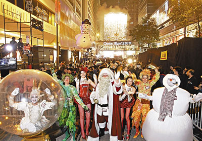 人潮把尖沙嘴、旺角、銅鑼灣等地區(qū)擠得水泄不通。蘭桂坊圣誕氣氛濃厚,酒吧人流如潮涌,有人穿上火辣性感的圣誕裝束,也有人扮成圣誕老人,或交換圣誕禮物,或高舉酒杯祝愿圣誕快樂(lè),把佳節(jié)氣氛升華至沸騰點(diǎn)。多個(gè)商場(chǎng)24日晚也舉行倒數(shù)活動(dòng),有商場(chǎng)不計(jì)成本,制造煙花瀑布及漫天飄雪的場(chǎng)境,營(yíng)造溫馨浪漫氣氛。