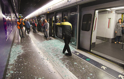 港鐵發(fā)言人表示,事發(fā)后,當(dāng)值職員已用木板封閉該損毀幕墻,待工程人員收車后維修,列車服務(wù)沒有受影響,爆玻璃原因仍在調(diào)查中。