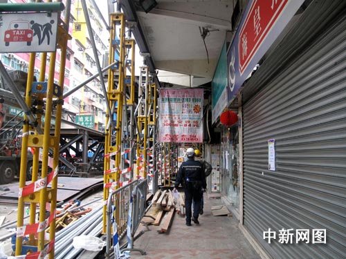 馬頭圍道塌樓周圍的善后工程仍在進(jìn)行。但在臨時(shí)鋼架支撐的樓房?jī)?nèi)的生活,自然不會(huì)踏實(shí)。同一排灰黃色的唐樓下,幾家店鋪仍開著門,生意似乎都較冷清。反倒是最靠近事故現(xiàn)場(chǎng)的那家掛著大大的“拆樓”布幅的雜貨鋪內(nèi),來幫襯的街坊要多些。街對(duì)面的北帝廟,依然青煙裊裊。