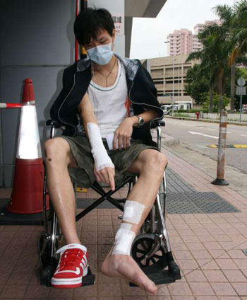 無辜遭殃的裝修工人名梁×德(28歲),左小腿及右手腕皆被腐蝕性液體濺中受傷,經(jīng)送院診治,初步確實(shí)屬三級(jí)灼傷,治療后幸無大礙已出院。消息稱,當(dāng)時(shí)他戴著耳筒聽音樂,聽不到同事大叫及避走四散,以致受傷。