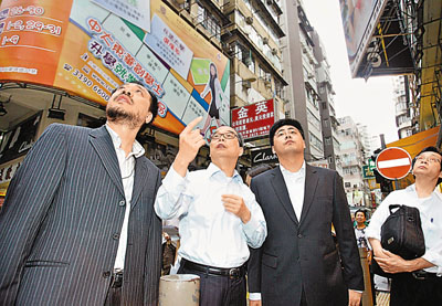 六月九日,腐蝕性液體傷人事件發(fā)生后,香港警方繼續(xù)對旺角奶路臣街與西洋菜南街交界處的幾棟嫌疑樓房進(jìn)行布控,進(jìn)一步排查疑點,大批香港媒體亦在現(xiàn)場跟蹤報道。 中新社發(fā) 鄭祚聲 攝