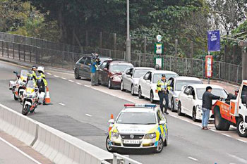 10日清晨6時30分,警方接獲多個市民舉報,指有10多輛汽車,高速沿薄扶林道向香港仔飛馳,懷疑有人進行非法賽車。警方于是在薄扶林村對面設(shè)立路障阻截,并派出一輛警車從后包抄。參與非法賽車的車輛,駛近薄扶林村發(fā)現(xiàn)前有警員守候時,紛紛掉頭,向中環(huán)方向高速竄逃。