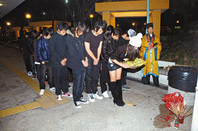 18日中午在死訊傳出后,有約50名戴口罩青少年男女趕到醫(yī)院,部分仍身穿校服。