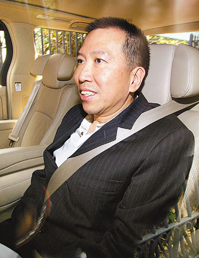 陳振聰18日穿上一套黑色西裝,下午2時30分在1名保鏢陪同下,乘坐其掛有兩地車牌的黑色豪華7人車,離開位于山頂歌賦山的豪宅,約10分鐘后便到達(dá)西區(qū)警署。警署門外早有逾20名記者守候,而警方也早有準(zhǔn)備,派出6、7名軍裝警員在警署停車場門口維持秩序。