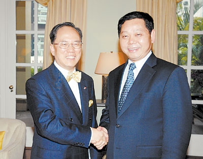 曾蔭權(quán)在會面時表示,香港近兩年對深港兩地經(jīng)濟(jì)社會發(fā)展等各方面做了深入研究,進(jìn)一步堅定了與深圳開展合作的決心,確定了香港發(fā)展目標(biāo)與深圳緊密聯(lián)系的發(fā)展方向。今后深港要進(jìn)一步加強(qiáng)溝通和融合,互利共贏,為深港市民多做實(shí)事,尤其是落實(shí)具體項(xiàng)目,從而推動深港合作再上新臺階。