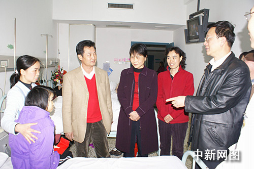 中新網(wǎng)韶關(guān)1月5日電 (馮昶 李凌 劉軍)1月4日下午,廣東韶關(guān)市政協(xié)常委、香港企業(yè)家陳達豪在韶關(guān)市政協(xié)副主席梁海峰等人的陪同下,來到粵北醫(yī)院探望了主要由他捐助并經(jīng)成功手術(shù)而獲得新生的粵北小女孩鄧?yán)蚍摇?/p>