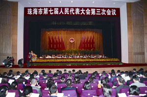 圖:珠海七屆人大三次會(huì)議25日開幕。(圖片來源:澳門日?qǐng)?bào))