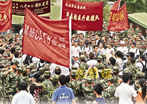 經(jīng)過(guò)約一小時(shí)的車(chē)程去到都江堰市的山峨鄉(xiāng)的一間小學(xué)遺址,在那里有數(shù)百武警軍人在救災(zāi),藝人除了高聲為他們打氣外,逐一與他們握手。之后轉(zhuǎn)往軍人正在救災(zāi)的濟(jì)南軍區(qū)的軍營(yíng)慰問(wèn),途中又去慰問(wèn)災(zāi)區(qū)民眾,有民眾見(jiàn)到華仔就哭。藝人在途中加油站借廁所時(shí),路邊的民眾見(jiàn)到他們紛紛要求握手簽名。