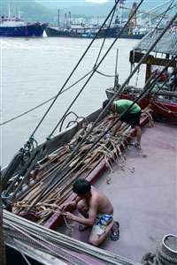 為期兩個(gè)月的南海伏季休漁期8月1日結(jié)束,大批內(nèi)地漁工日前已返回受雇的漁船工作,為錨泊內(nèi)港的200多艘漁船維修補(bǔ)給,如整理各種捕撈工具、添加燃油及購(gòu)買冰塊,為8月1日上午復(fù)業(yè)作最后準(zhǔn)備。