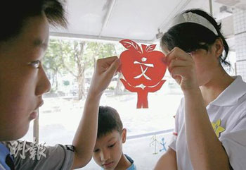 Dawn26日與4名同受艾滋病影響的內地年輕人來香港訪問,先到香港單親協(xié)會探望10多名單親兒童,一齊透過剪紙表達愿望。Dawn用紅紙剪出蘋果,上面有個“文”字,她說,最希望母親可以讀書,“吃下充滿知識的蘋果,那就有希望了”。