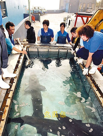 廈門基地負(fù)責(zé)人李奕慰說,一般與兩條病鱘一樣年齡10歲、身長約2米的中華鱘,日進(jìn)食量應(yīng)該達(dá)到800至1000克,但6號鱘魚10多日來,日均進(jìn)食量都在100克左右,恢復(fù)較慢的8號魚是從一周前才開始進(jìn)行喂食,食量更僅有約80克,僅達(dá)正常食量的10%。