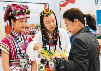 中新網4月12日電 據香港《文匯報》報道,11日,包括北京、上海、廣州、長春、鄭州、西安等在內的全國186個重點旅游城市同步啟動“全國百城旅游宣傳周”活動。近百名港澳游客接受北京旅游局、商務局贈送的《消費伴旅》,憑此手冊港澳游客可在王府井、西單、前門享受折上折購物優(yōu)惠。