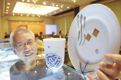 昨日展出的設(shè)計品,涵蓋時裝、珠寶、鐘表、瓷器、音響等,將于今晚舉行的設(shè)計營商周周年晚會拍賣,得款將用作支持機構(gòu)推廣設(shè)計活動。平面設(shè)計師靳埭強與Royal Copenhagen(哥本哈根皇家瓷器)合作,制作10人用的中式青花瓷餐具,名為《華宴》。靳埭強說,設(shè)計花了半年時間制作,用上紫荊花及牡丹花兩種花,代表香港回歸中國。