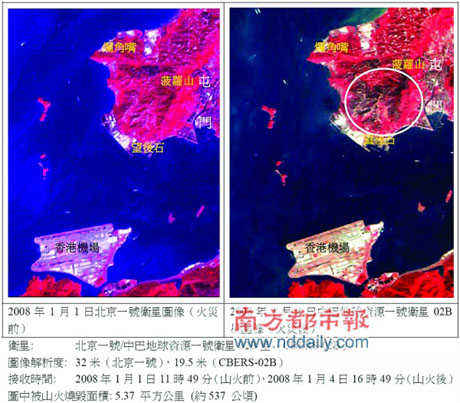 今年1月1日至3日香港屯門發(fā)生三級山火,在動用我國發(fā)射的兩顆衛(wèi)星進(jìn)行精確遙感測量后,得出了精確的山林被毀面積為537公頃(約5.37平方公里),比香港消防處早期公布的350公頃過火面積有大幅增加。