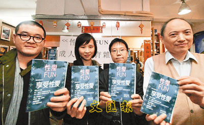 據(jù)香港大公報(bào)報(bào)道,紫藤3個月前招募20名義工出版免費(fèi)派發(fā)的《性愛!!!Fun》,刊物內(nèi)容主要包括介紹不同性用品、性經(jīng)驗(yàn)分享、由性工作者解答疑難的信箱,以及由專家分享性愛要訣等,預(yù)計(jì)會在月中派發(fā)約2000本創(chuàng)刊號,派發(fā)地點(diǎn)包括紫藤、指定性商店和書店。市民可由今天起到紫藤網(wǎng)站下載。