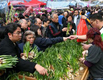 中新網(wǎng)2月4日電 據(jù)香港大公報報道,天公造美,香港鼠年前最后一個星期日終放晴。3日維多利亞公園年宵市場人頭涌涌。雖然物價普遍上升,但不減市民辦年貨的意欲,全家總動員到年宵市場逛逛,有不少市民挑選年花迎新春,熱鬧氣氛迅即令現(xiàn)場升溫。
