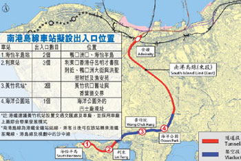 港鐵項目統(tǒng)籌經(jīng)理鄧伯洪28日率先向南區(qū)區(qū)議會簡介南港島線的初步設(shè)計,他指出早前經(jīng)初步土地勘察后,發(fā)現(xiàn)海洋公園至黃竹坑一帶地段的土質(zhì)為軟土,不宜鉆挖隧道,故建議由海洋公園至利東路段以架空天橋模式興建,其它路段則以隧道配合。