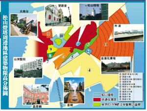 圖:松山燈塔周邊地區(qū)建筑物限高分布圖。(圖片來(lái)源:澳門日?qǐng)?bào))