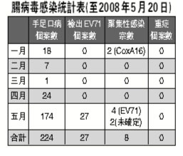 腸病毒感染統(tǒng)計(jì)表(至2008年5月20日)。(圖片來(lái)源:澳門(mén)日?qǐng)?bào))