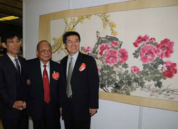 中新網(wǎng)6月18日電 據(jù)香港大公報報道,“大愛無疆──汶川大地震抗震救災(zāi)圖片展”17日起一連六日在香港展覽中心舉行。主辦機構(gòu)單位還展出逾80幅來自全國各地名書畫家作品,在展覽現(xiàn)場義賣。原全國人大常委曾憲梓17日率先以50萬元,購買由國家一級畫師詹庚西捐贈的作品《國色天香》。