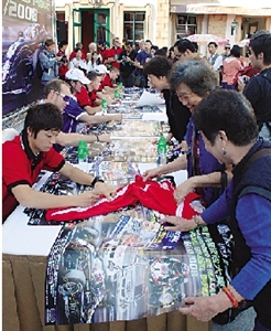 車(chē)手為車(chē)迷簽名。(圖片來(lái)源:澳門(mén)日?qǐng)?bào))