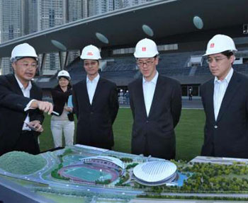 曾德成27日視察正在興建的將軍澳運(yùn)動場,了解工程的最新進(jìn)展。他說,該運(yùn)動場是2009東亞運(yùn)動會田徑項(xiàng)目的賽場,除了興建將軍澳運(yùn)動場外,為配合東亞運(yùn)動會的舉行,特區(qū)政府也正于13個(gè)體育場地進(jìn)行改善工程,預(yù)計(jì)明年中完成。其中,九龍公園游泳池也是東亞比賽場地之一,將于下星期一重開。
