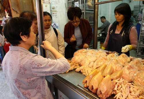 為準(zhǔn)備冬至,昨日九龍城、灣仔、銅鑼灣街市一帶人頭涌涌,不少市民已在早上購(gòu)買餸菜“做冬”。不過(guò)受到禽流感影響,香港首次冬至市面沒(méi)有活雞供應(yīng),街市雞檔全部改賣冰鮮雞,每只售價(jià)約四十五至七十五元。雞檔檔主表示,全日入了大約一百多只冰鮮雞,不過(guò)擔(dān)心在目前的經(jīng)濟(jì)環(huán)境下,生意難做,因此不敢加價(jià),“現(xiàn)在這種環(huán)境,你再加,人人跑到超市買,自己反而沒(méi)生意!