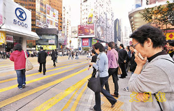 煙霧籠罩香江,環(huán)保署三個(gè)路邊空氣質(zhì)素監(jiān)察站包括中環(huán)、銅鑼灣及旺角錄得逾100的甚高污染水平,截止10日傍晚6時(shí),除中環(huán)空氣污染指數(shù)一度錄得119,銅鑼灣及旺角分別曾錄得114及106,均屬甚高水平,其它地區(qū)的一般監(jiān)測(cè)站,空氣污染水平維持在偏高水平。