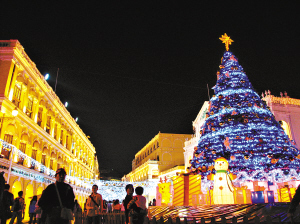 街頭和酒店璀璨的燈飾讓澳門(mén)很有節(jié)日氣氛。