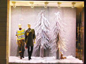 除了燈飾,估計(jì)很多女孩子最喜歡看的還是商店櫥窗吧。雖然已經(jīng)有部分品牌已經(jīng)開始打折,不過一來不是那些十分大牌的品牌,二來折扣也未算去到最低,吸引力剛夠你的心跳那么一下而已。比它們更吸引的是大牌子專賣店的櫥窗。和廣州的商家不同,澳門的品牌專賣店櫥窗大多都是由專門的櫥窗設(shè)計(jì)師負(fù)責(zé)打理的,通常都會設(shè)計(jì)得很立體和整體性很強(qiáng),譬如某品牌的節(jié)日裝修就是從櫥窗后面“種”出好幾棵許愿樹,把櫥窗和正常的店面連接起來,模特就穿著當(dāng)季服飾站在樹下,任顧客去仔細(xì)研究,甚至你伸手去摸也沒關(guān)系。