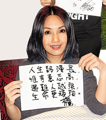 經(jīng)歷一年的恢復(fù),千嬅贊賞政府重建災(zāi)區(qū)的速度很快,像曾受災(zāi)的北川或會(huì)再有余震,現(xiàn)移往新地方重建了另一個(gè)北川,好讓民眾重新開展新生活,自給自足。千嬅明白這不是一時(shí)三刻可以完全復(fù)元過(guò)來(lái),重建項(xiàng)目尚要很多年才能真正成功。但令千嬅最欣慰的是:“去年到災(zāi)區(qū)時(shí),城里每個(gè)人臉上都是鎖緊愁眉,這次重臨舊地,就看到連小朋友都變得開懷了,臉上有掛上笑容,問(wèn)他們的志愿,大家異口同聲說(shuō)想做醫(yī)生將來(lái)去幫人,所看到的都是充滿生存的意志,這也就是中國(guó)人的特質(zhì),擁有頑強(qiáng)的生命力和團(tuán)結(jié)一致的精神!”