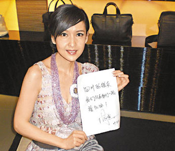 一向愛心爆棚的周慧敏去年為賑災(zāi)表演而高歌一曲《喝采》,今年周慧敏希望四川的朋友知道,自己和他們?cè)谝黄,希望他們努力,加油?table border=0 cellspacing=0 cellpadding=0 align=left>