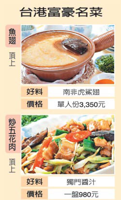 其中福臨門就是眾所公認(rèn)的富豪飯?zhí),脆皮雞、燕窩、魚翅與荷葉糯米飯,在質(zhì)量與口碑上都是一等一,價(jià)格也成正比,以套餐為例,一客魚翅、25頭吉品鮑、龍蝦、乳鴿、炒飯加燕窩要港幣2500元。此外鮑魚大王楊貫一的富臨飯店、四季酒店中米其林三星的龍景軒也都算得上是富豪飯?zhí)谩?/p>