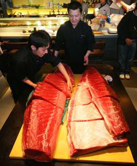 據(jù)香港大公報(bào)報(bào)道,東京中央批發(fā)市場(chǎng)在每一年開(kāi)市所售的第一條魚,都是當(dāng)日全場(chǎng)“最大、最靚”,傳統(tǒng)稱為“日本一”。板前壽司老板鄭威濤以約44萬(wàn)港元投得該條重276公斤的“魚王”,是首次有港人投得“日本一”!棒~王”昨日已送抵香港,不少市民專程前往各分店一嘗“天價(jià)魚王”的滋味,刺身價(jià)錢由50元至150元一件不等。