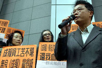 中新網(wǎng)1月23日電 香港《成報(bào)》決定就一批前員工日前在申訴大會(huì)的言論及指控,采取法律追究行動(dòng),認(rèn)為有關(guān)言論構(gòu)成誹謗,影響商譽(yù)。大約三十名《成報(bào)》前員工22日到警察總部拉橫額抗議并報(bào)案,要求警方商業(yè)罪案調(diào)查科調(diào)查《成報(bào)》欠薪事件。