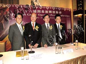 何鴻燊說(shuō),“十六浦”是內(nèi)港唯一的綜合娛樂項(xiàng)目,也是澳門唯一依水邊興建的度假村酒店,一面是珠海灣仔,坐擁“一河兩岸”的美麗景致。另一面直通新馬路,連接市中心的游客區(qū),旅客將會(huì)在“十六浦”同時(shí)找到澳門的過(guò)去、現(xiàn)在與未來(lái)。