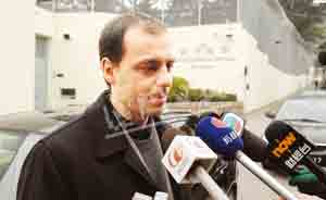 “資料圖:2008年1月30日”二零零八年一月三十日,歐文龍的辯護律師施展鵬(右)抵達澳門終審法院。當日,澳門前運輸工務(wù)司司長歐文龍案最終宣判:歐文龍被控受賄、清洗黑錢、濫用職權(quán)等罪合計判處有期徒刑二十七年,罰款二十四萬元并沒收財產(chǎn)。 中新社發(fā) 史利 攝