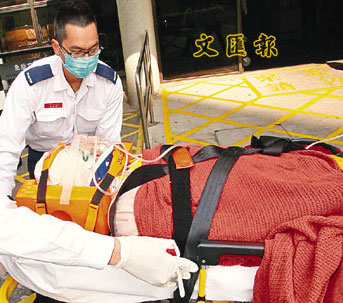 有街坊途經(jīng)該處聽聞巨響,發(fā)現(xiàn)事態(tài)嚴(yán)重,馬上報警。消防員接報到場,升起云梯到檐篷上將胡某救下,送院不治。
