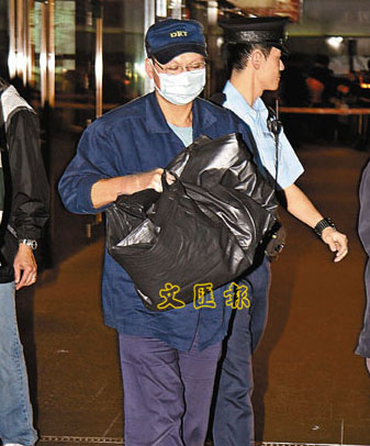由于現(xiàn)場大廈設(shè)有閉路電視監(jiān)察系統(tǒng),相信整個棄尸過程全被拍下。探員事后將錄像帶、鞋袋、外套、毛巾及紙條撿走,然后召仵工到場將尸體送去殮房,以等候法醫(yī)官進一步檢驗,以確定死因。