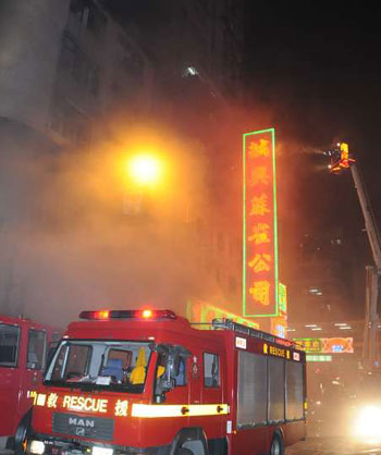 火警在8日晚11時(shí)零7分發(fā)生,消防員接報(bào)迅即到場,但附近街道狹窄,并停滿等客小巴,令消防車無法實(shí)時(shí)駛?cè),要警員趕往清場后,才能停車卸下工具派員進(jìn)入大廈和架起云梯灌救。