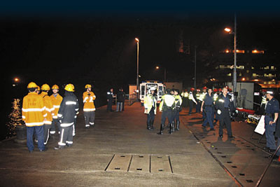 由于仍有十多人失蹤,有關(guān)方面大舉在現(xiàn)場一帶以射燈照明搜救,并出動(dòng)直升機(jī),但因海面有多個(gè)貨柜墮海后漂浮,搜救船只須步步為營,以防與海上貨柜相撞。最新消息稱,救援人員懷疑失蹤船員被困在沉沒補(bǔ)給船的機(jī)房,今晨零時(shí)已派出大批潛水人員到場,下海打撈。