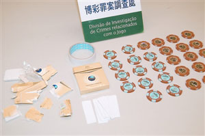 警員同時(shí)在兩人身上搜出多達(dá)29個(gè)面值10萬(wàn)元的籌碼,不排除兩人利用貼有兩雙面膠紙的煙盒,黐走事主放在賭臺(tái)上的籌碼。