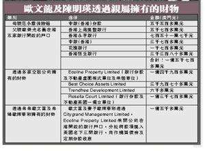 歐文龍及陳明瑛通過(guò)親屬擁有的財(cái)物。(圖片來(lái)源:澳門日?qǐng)?bào))